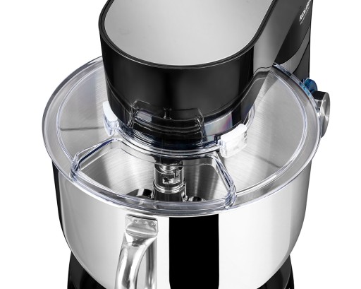 Stalowa 6-cio litrowa misa z wyprofilowanym pojedynczym uchwytem jest bardzo wygodna w obsłudze. Dzięki temu pojedynczemu, dużemu uchwytowi możesz łatwo montować i wymontować (FASTLOCK SYSTEM) misę z urządzenia, podczas gdy drugą dłonią w równie prosty sposób możesz opróżniać misę szpatułką.